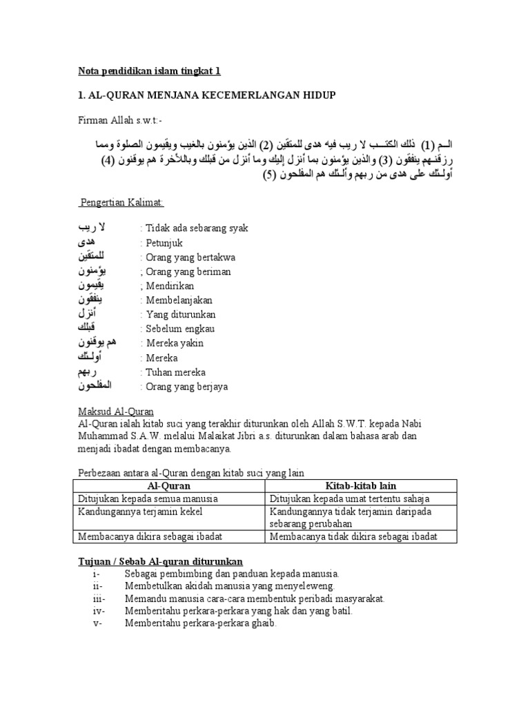 Agama Islam Nota Pendidikan Islam Tingkatan 1
