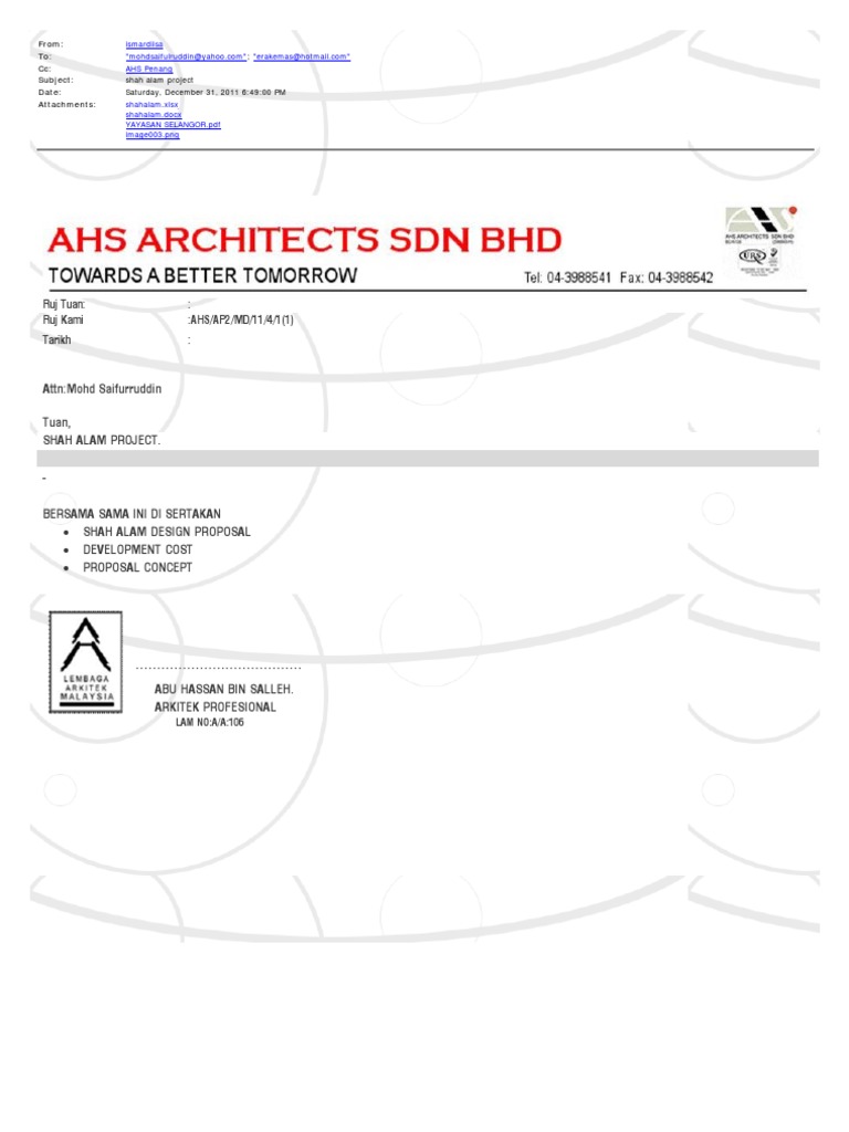 Attn Mohd Saifurruddin Tuan Shah Alam Project Ruj Tuan Ruj Kami Ahs Ap2 Md 11 4 1 1 Tarikh