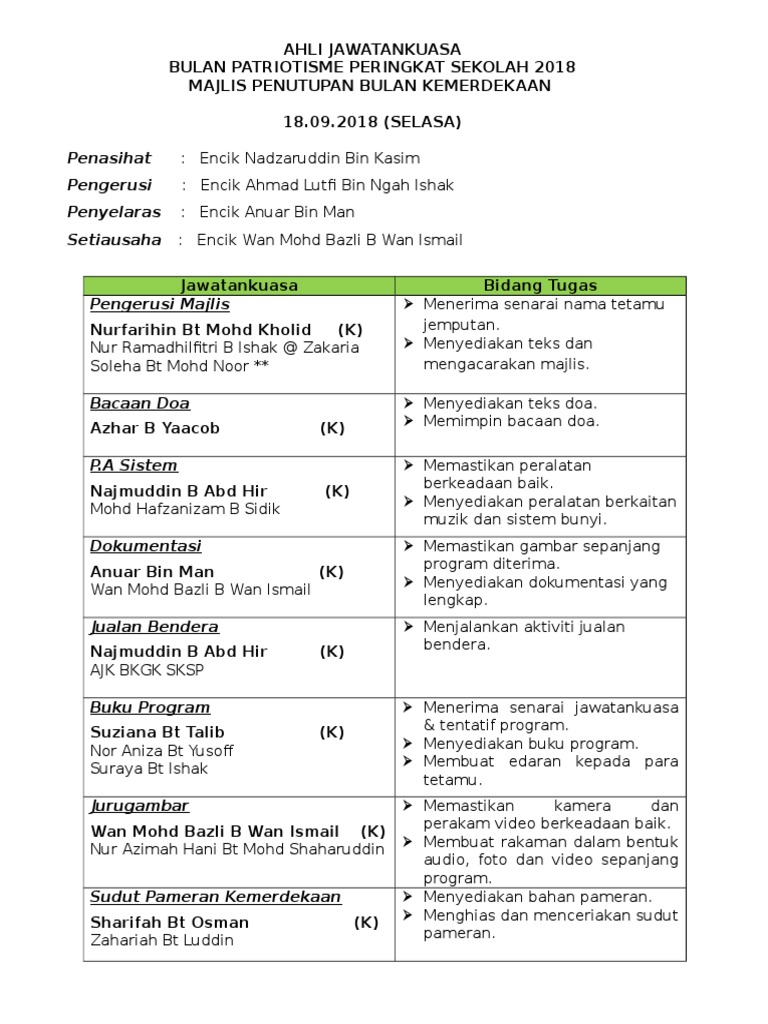 Kertas Kerja Cadangan Sambutan Bulan Kemerdekaan 2018 Pages 1 13 Text Version Anyflip