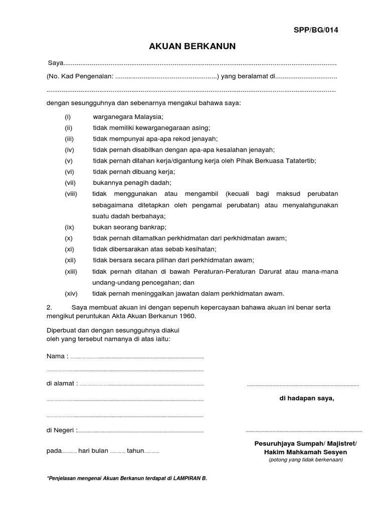 Contoh Surat Akuan Sumpah Berkanun Akta 1960 Free Download Images