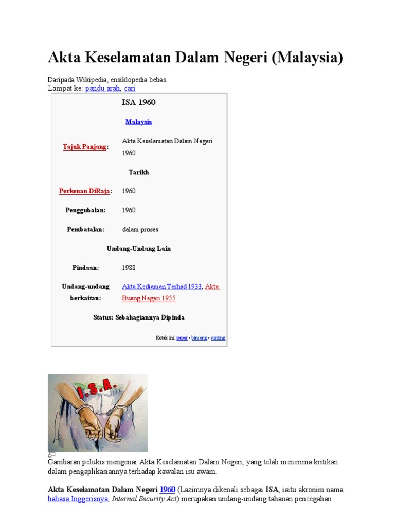 Doc Akta Keselamatan Dalam Negeri Isa Dikekalkan Demi Menjamin Kesejahteraan Negara Cikgu Umie Academia Edu