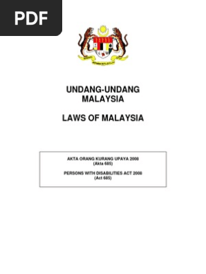 Yang apabila berinteraksi dengan pelbagai halangan boleh menyekat penyertaan penuh dan berkesan mereka dalam masyarakat menurut akta 685 akta orang kurang upaya 2008. Beatrice fernandez v sistem penerbangan malaysia. Akta orang kurang upaya 2008 harapan dan realiti. Contohnya terdapat undang undang kecil untuk mewajibkan bangunan baru menyediakan akses bagi orng kurang upaya seperti di bangunan kerajaan dan tempat awam.