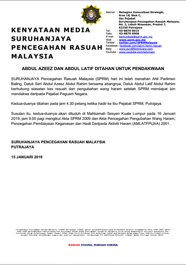 Macc Force Kenyataan Media Rasmi Sprm Sprm Nafi Dakwaan فيسبوك