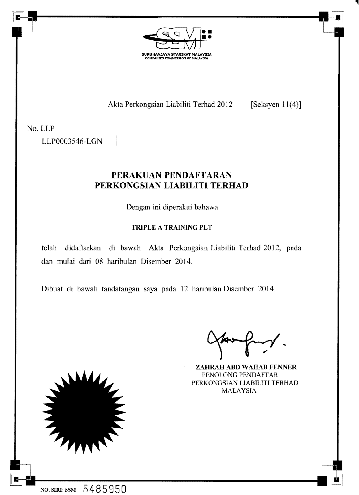 Borang Pendaftaran Fail Cp Perkongsian Liabiliti Surat Pendaftaran Perkongsian Liabiliti Terhad Daripada Suruhanjaya Syarikat Malaysia Ssm 2 Salinan Perjanjian Perkongsian Liabiliti