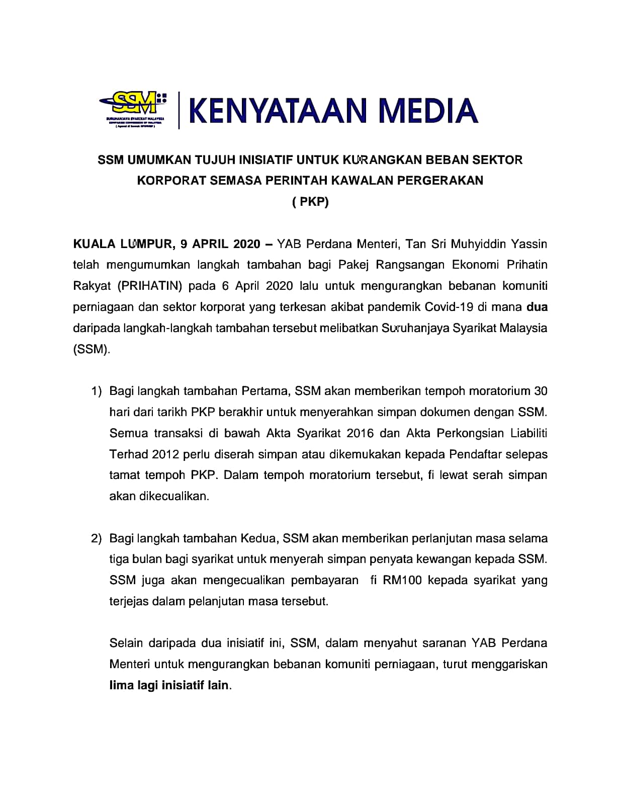 Jab Perdana Menteri On Twitter Kenyataan Media Ssm Umumkan Tujuh Inisiatif Untuk Kurangkan Beban Sektor Korporat Semasa Perintah Kawalan Pergerakan Pkp Sumber Ssmofficialpage Jabatanperdanamenteri Mesyuaratkhasmenteri Covid19