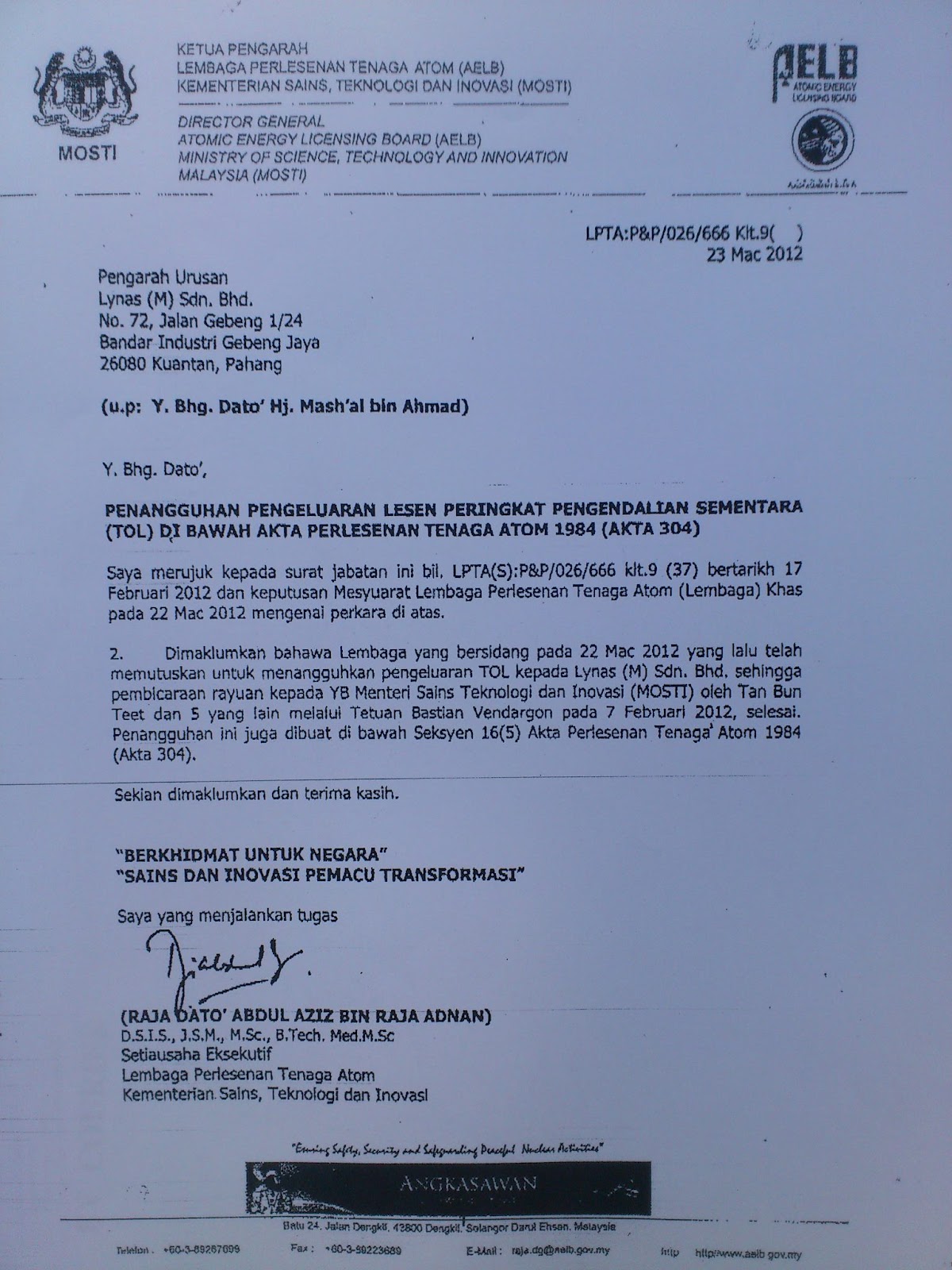 Save Malaysia Stop Lynas Lynas License Suspended Dated Mac 23 2012