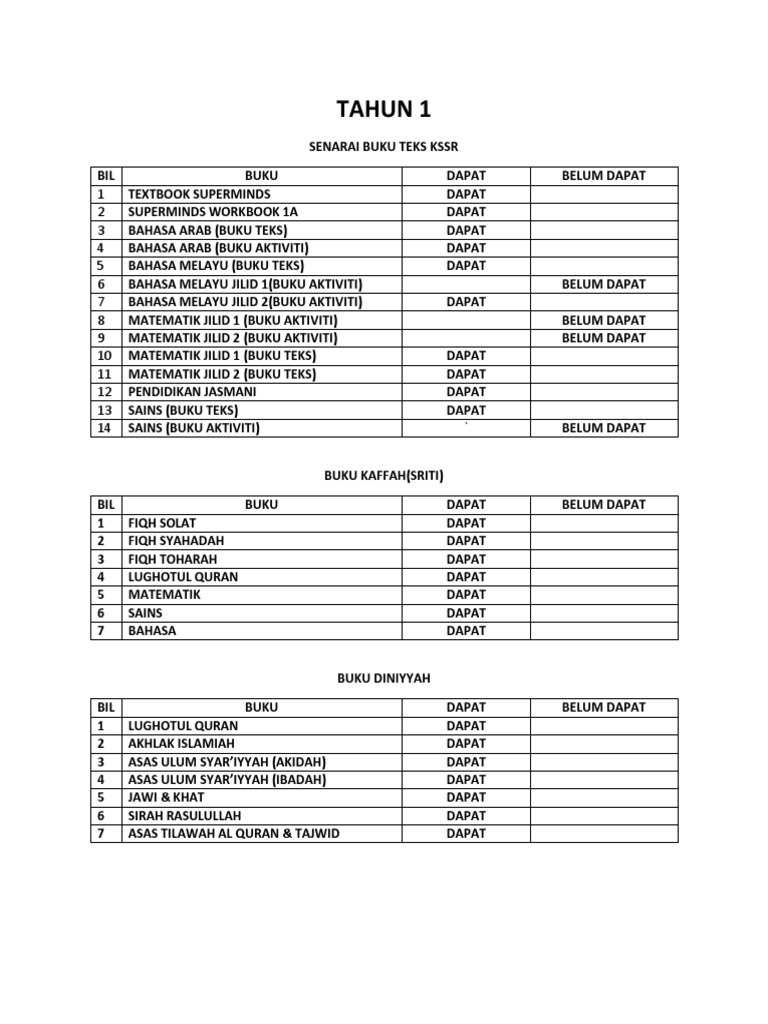 Buku Teks Tahun 1