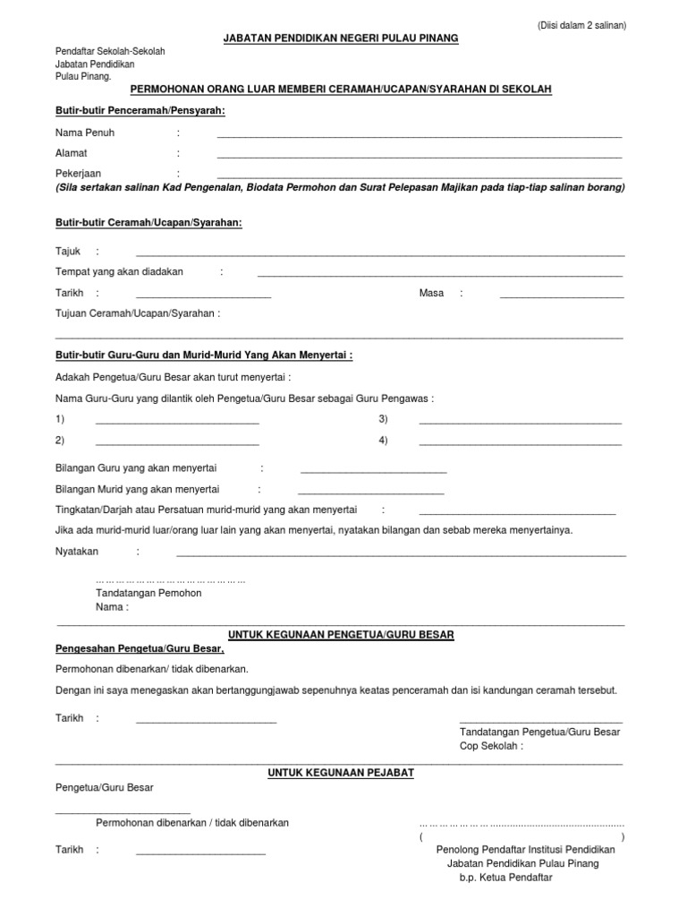 Permohonan Orang Luar Memberi Ceramah