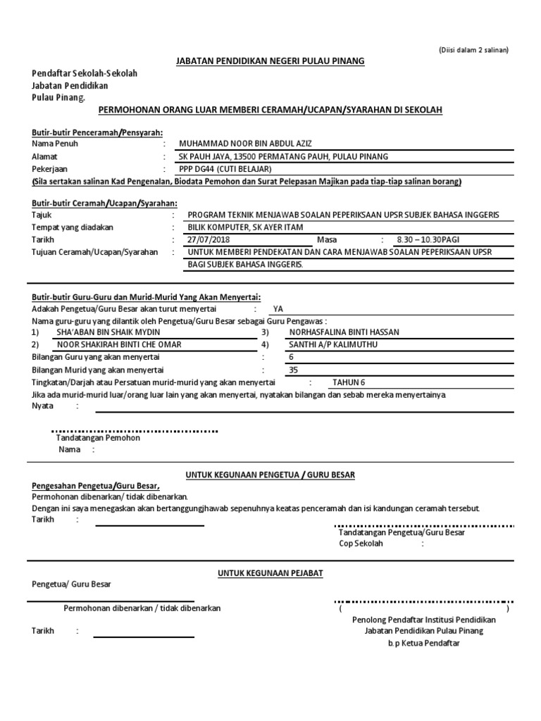 Borang Permohonan Penceramah Ke Jpn