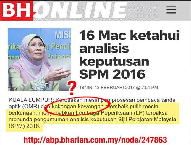 Tiada Duit Untuk Mengganti Mesin Pemprosesan Pembaca Tanda Optik Omr Menyebabkan Keputusan Spm 2016 Ditunda Kepada 16 Mac 2017 Sentiasabikinpanas