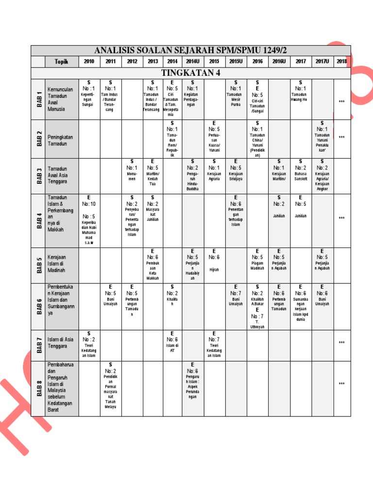 Analisa Soalan Ramalan Sejarah Spm 2018 Mengikut Bab