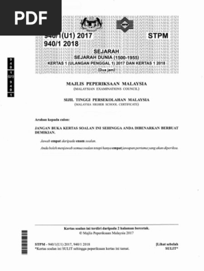 Juhaimi Majid Analisa Soalan Peperiksaan Sejarah Dunia 1500 1955 Stpm 2013 2016