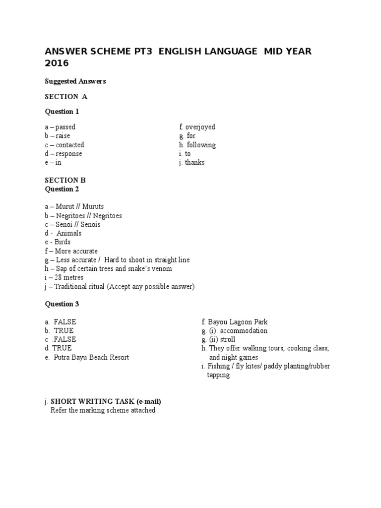 Answer Scheme B Ing Pt3 Mid Year 2016 Vocabulary Grammar