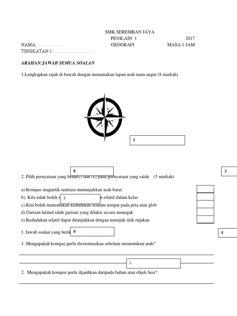 Tingkatan 1 Geografi Arah Mata Angin Dan Lessons Tes Teach