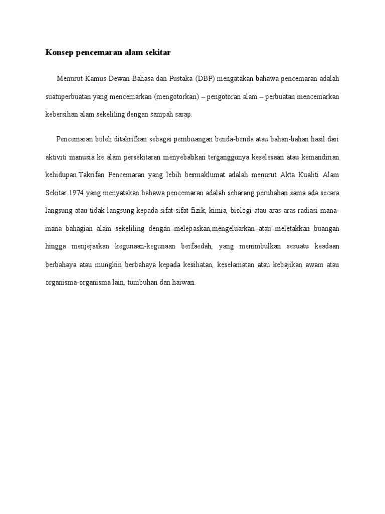Konsep Pencemaran Alam Sekitar