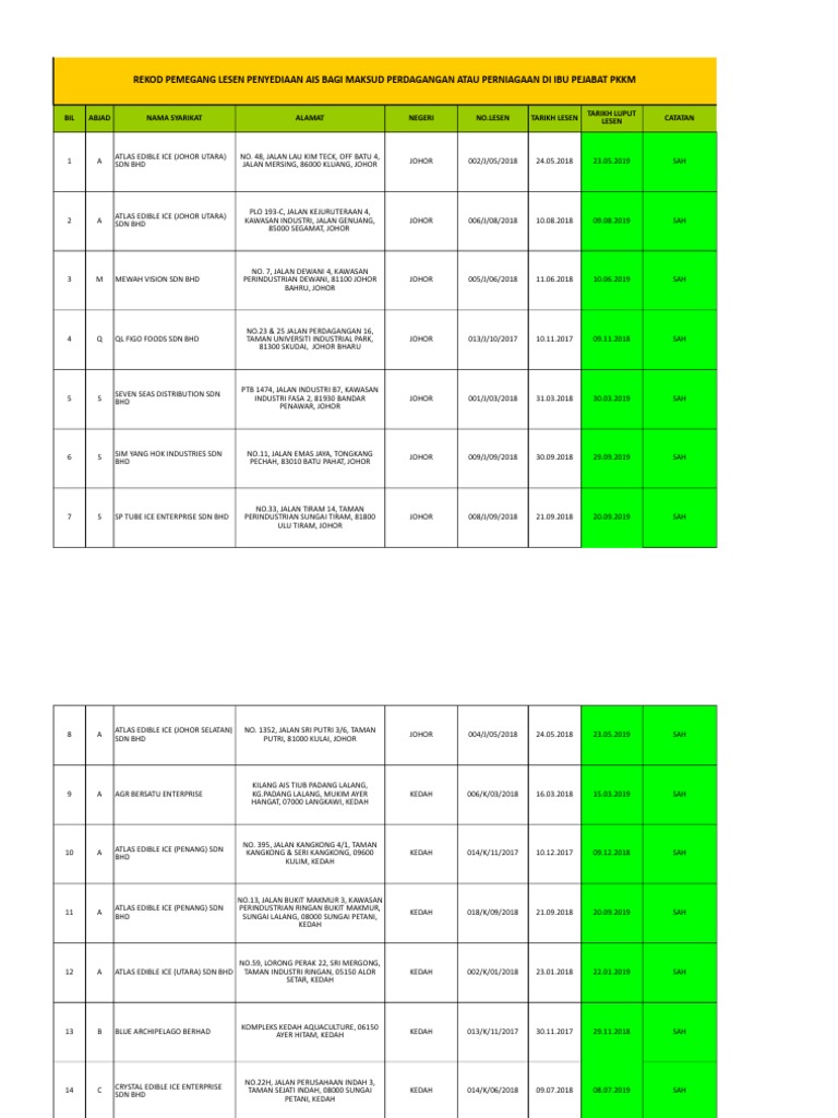 Rekod Pemegang Lesen Penyediaan Ais Bagi Maksud Pdf Document