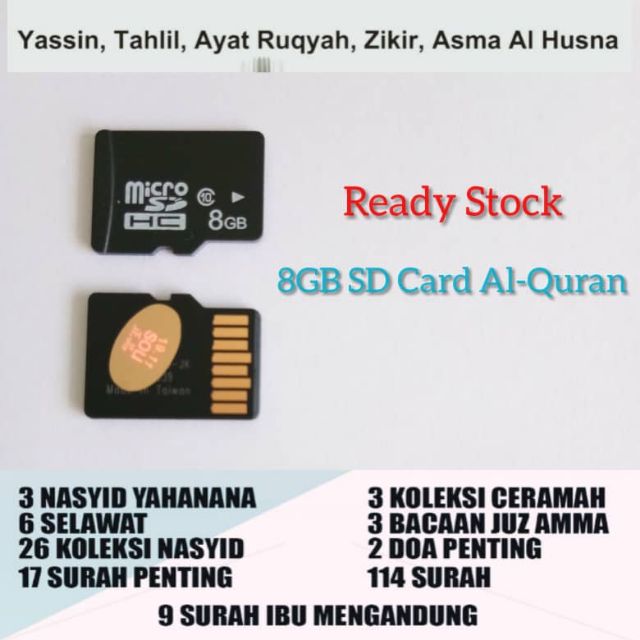 8gb Memory Card Mp3 500 Ayat Al Quran 30 Juzuk And Terjemahan Nasyid Shopee Singapore