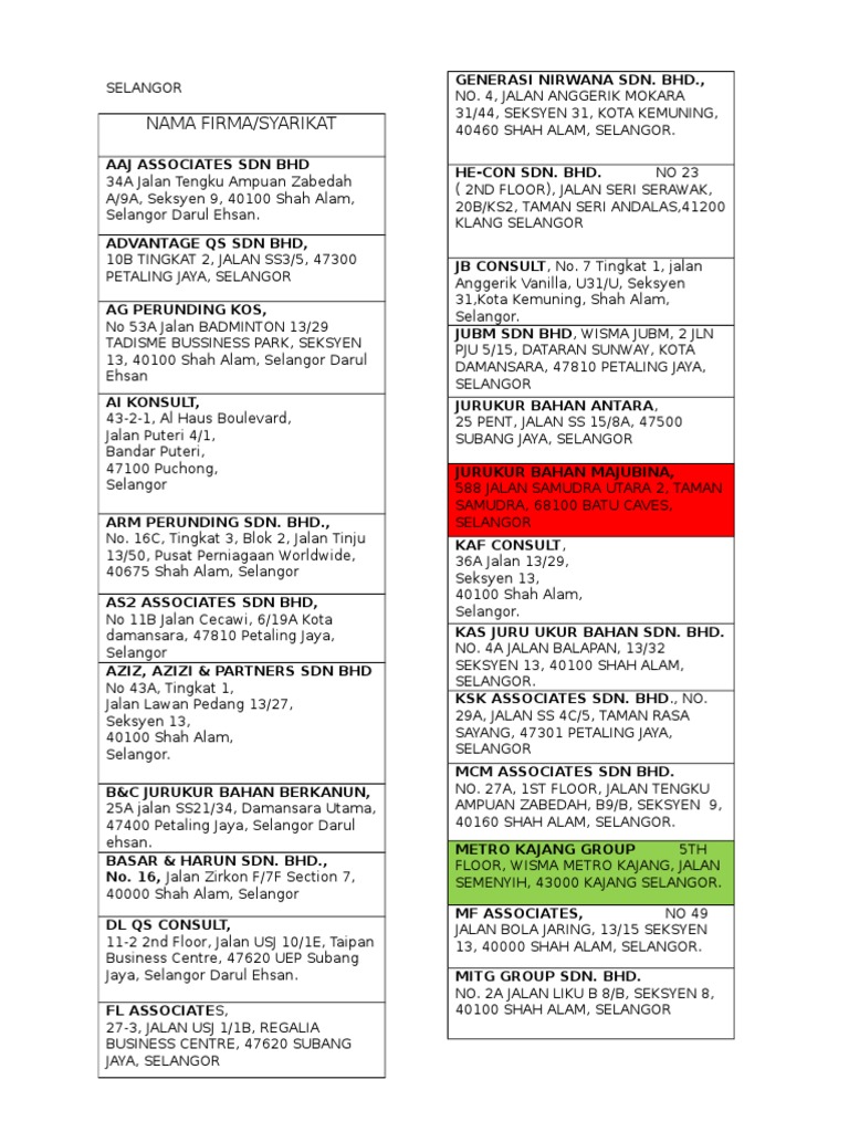 List Of Qs Firm East Coast Peninsular Malaysia Pdf Document
