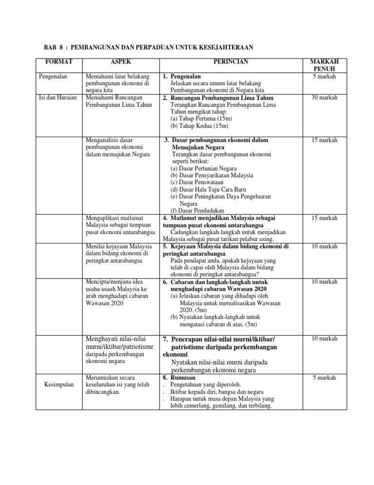 Nota Sejarah Tingkatan 5 Bab 8 Pembangunan Dan Perpaduan Untuk Kesejahteraan Pdf Document