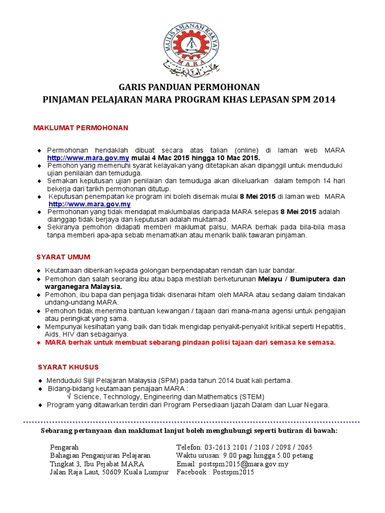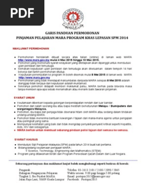 Garis Panduan Permohonan Pinjaman Pelajaran Mara Program Khas Lepasan Spm 2014