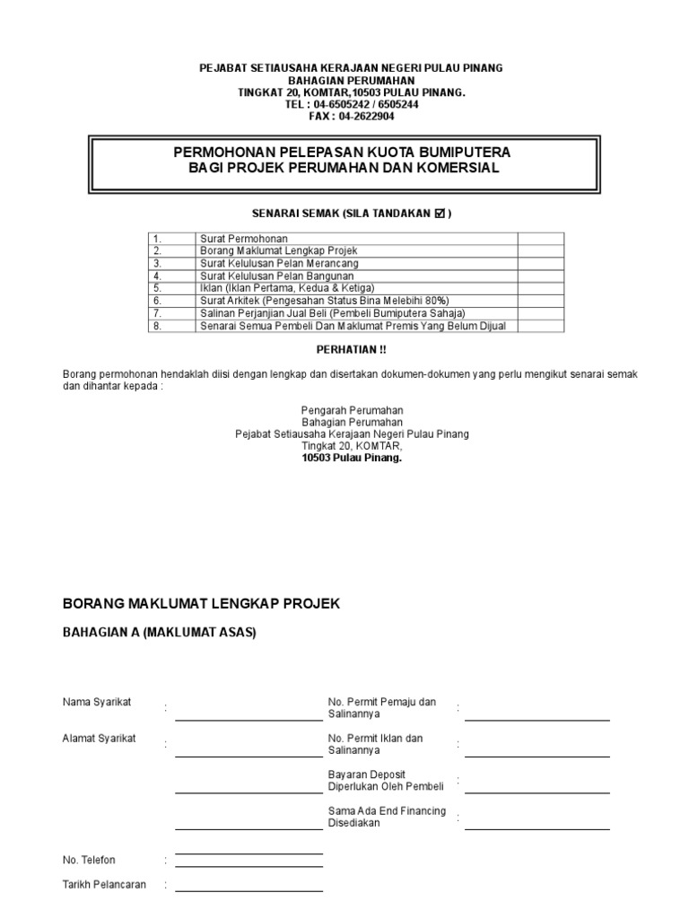 Borang Pelepasan Kuota Bumiputera