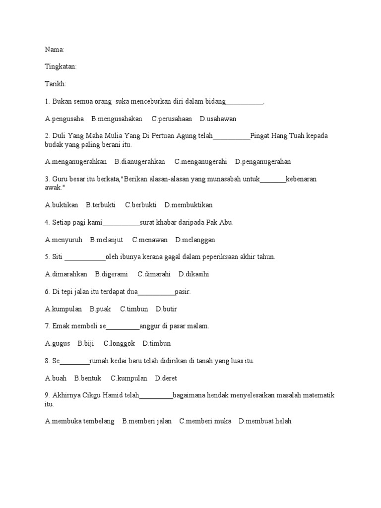 Doc Ujian Bm Peralihan Smk Dm Nurul Zahira Md Isa Academia Edu