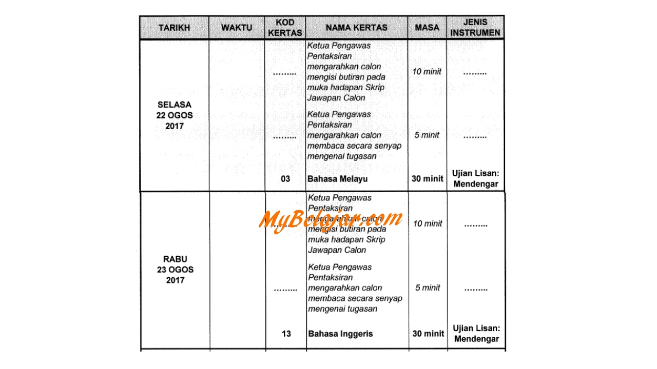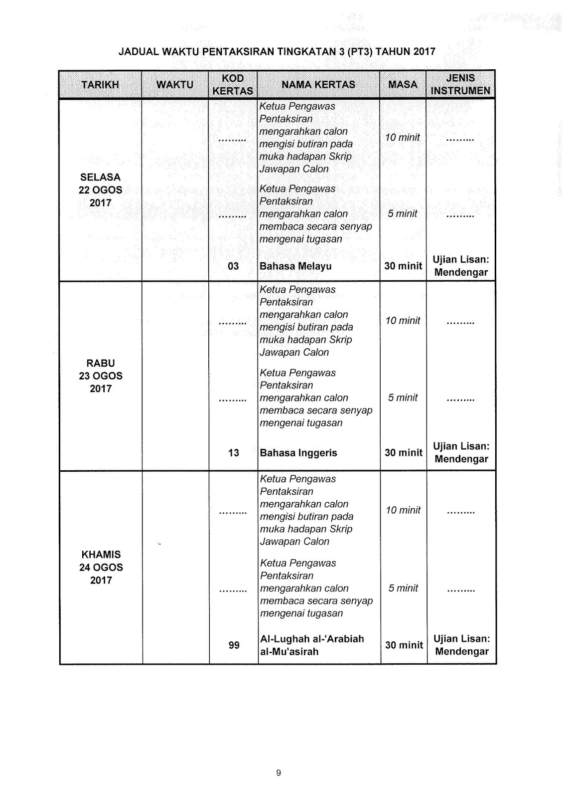 Jadual Pt3 2017 Rasmi Lembaga Peperiksaan Kementerian Pendidikan Malaysia