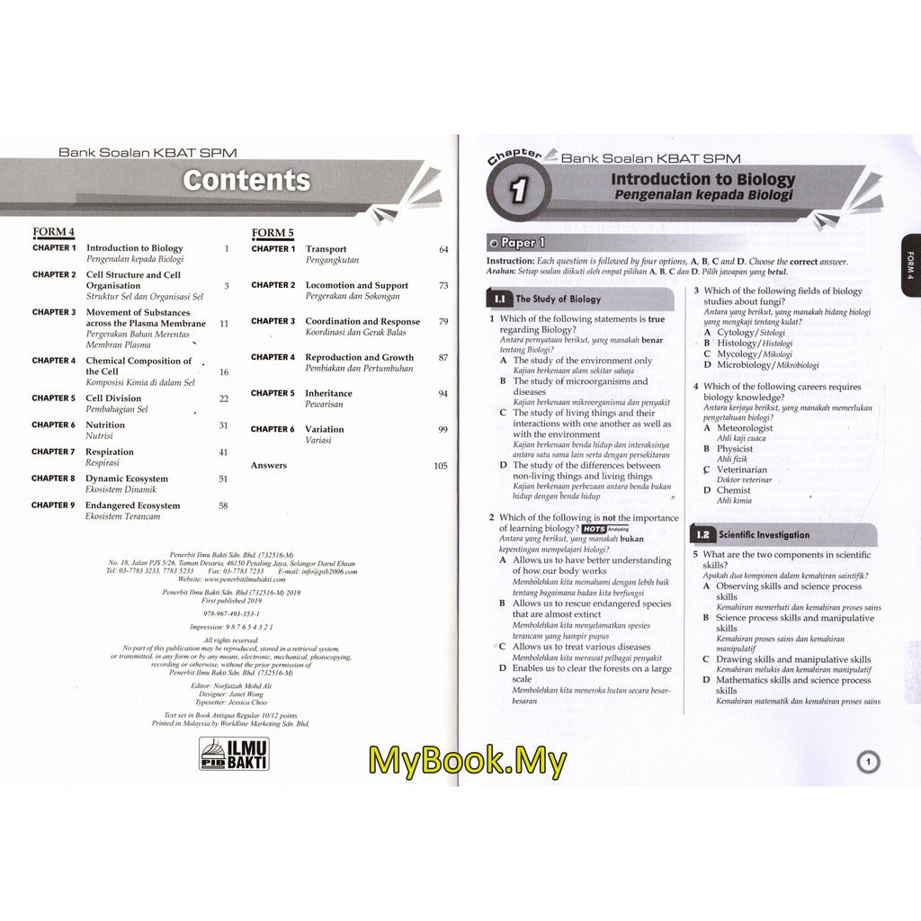Myb Buku Latihan Bank Soalan Kbat Tingkatan 4 5 Spm Biology Biologi Dwibahasa Ilmu Bakti Shopee Malaysia