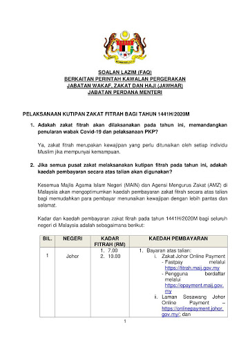 Ketetapan Harga Fitrah Bagi Negeri Johor Darul Ta Zim Tahun 1441h 2020m Maij Versi Mobile