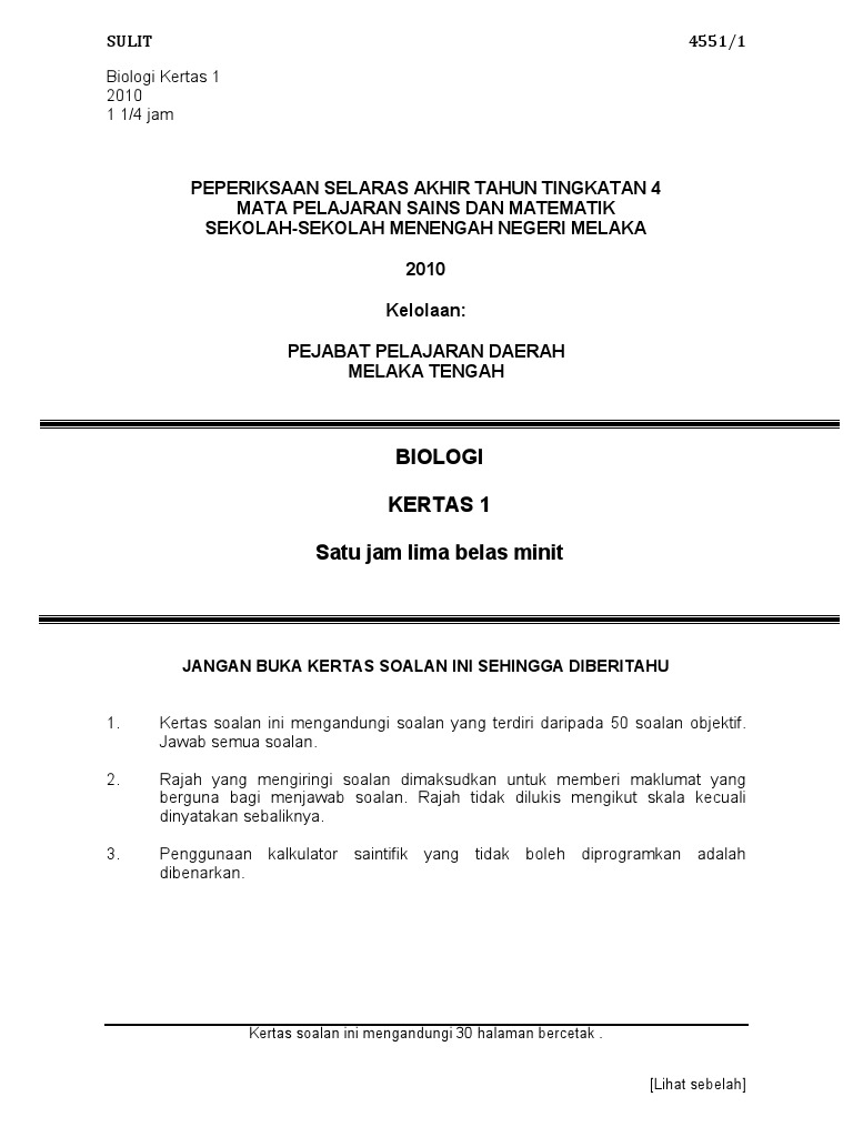 Download Rpt Kimia Biologi Tingkatan 5 Penting Peperiksaan Akhir Tahun Tingkatan 4 Setara Daerah Johor Bahru Kertas 1 Skoloh