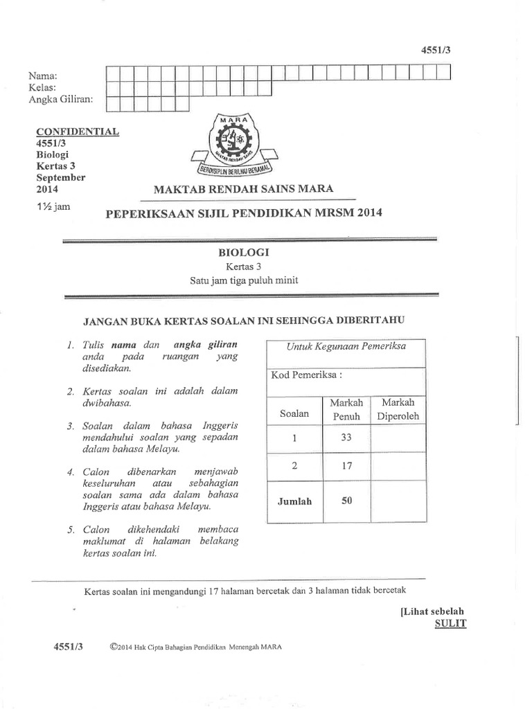 Kompilasi Kertas Percubaan Mrsm Spm Bilingual Dwibahasa Biology Shopee Malaysia