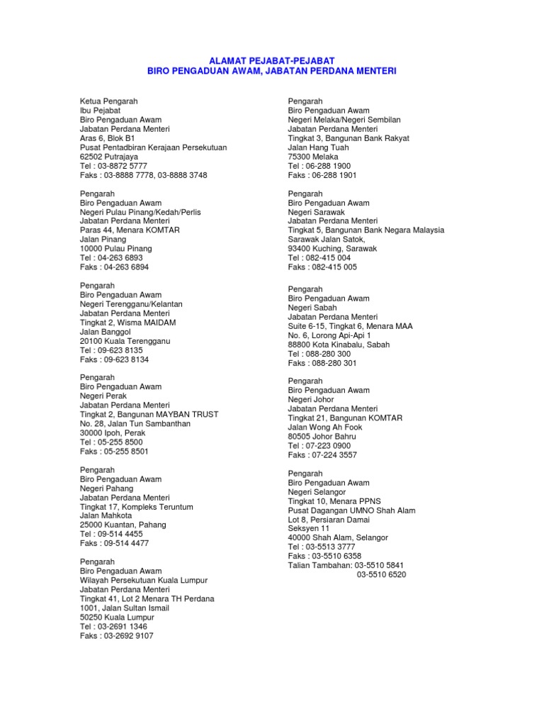 Senarai Pejabat Biro Pengaduan Awam Bpa Di Seluruh Malaysia Layanlah Berita Terkini Tips Berguna Maklumat
