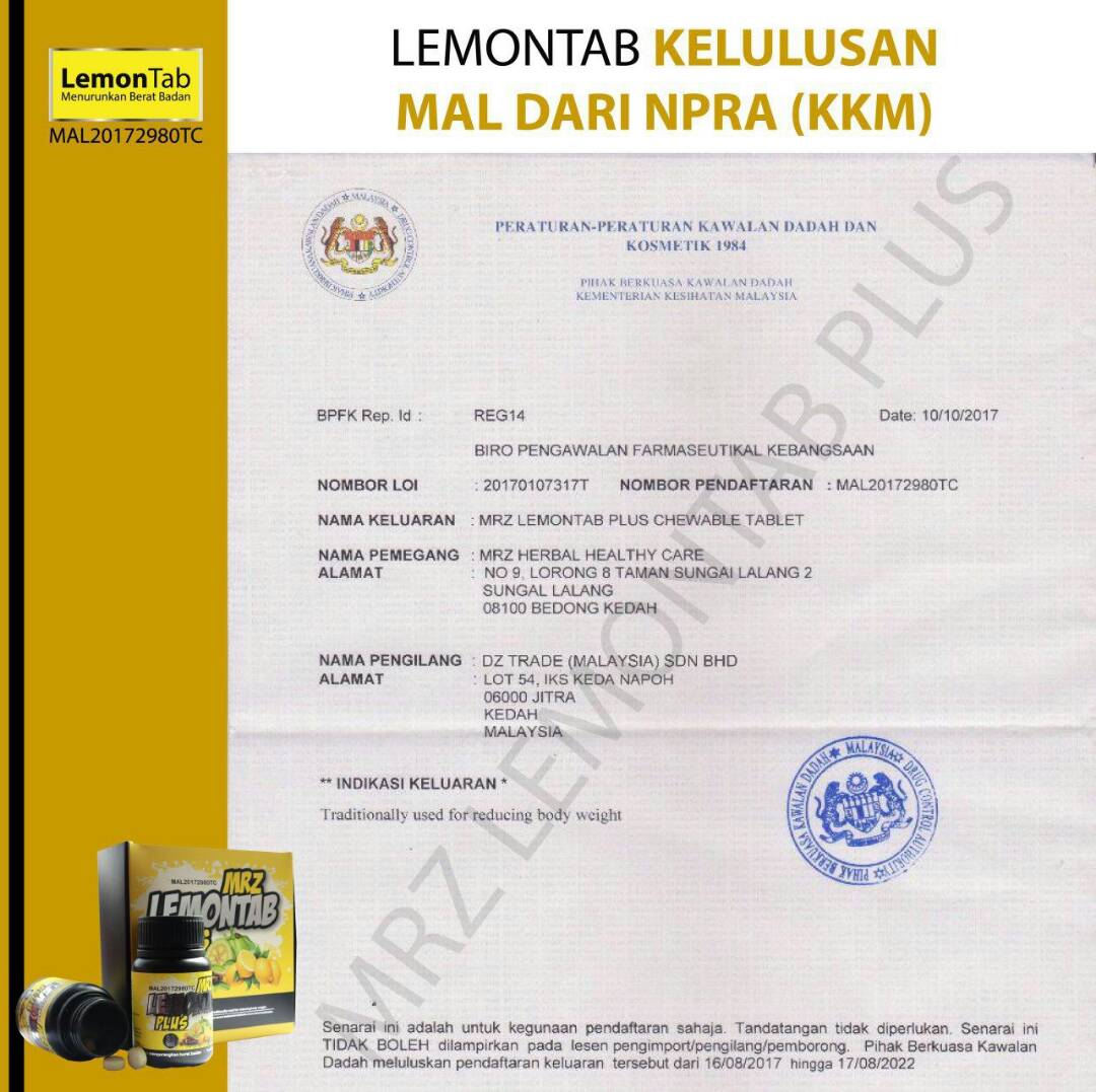 Mrz Lemontab Plus Lulus Kkm Mal20172980tz Halal Mrz Lemontab Plus Fereena Marketing Sdn Bhd
