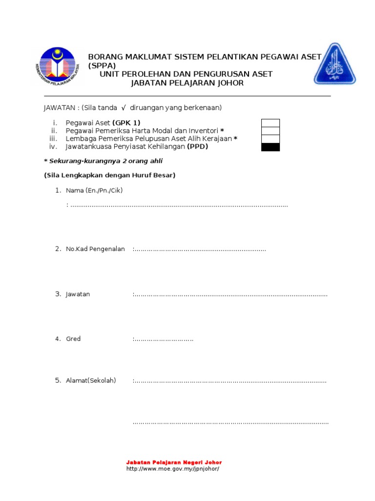 Borang Maklumat Sistem Lantikan Pegawai Aset Slpa