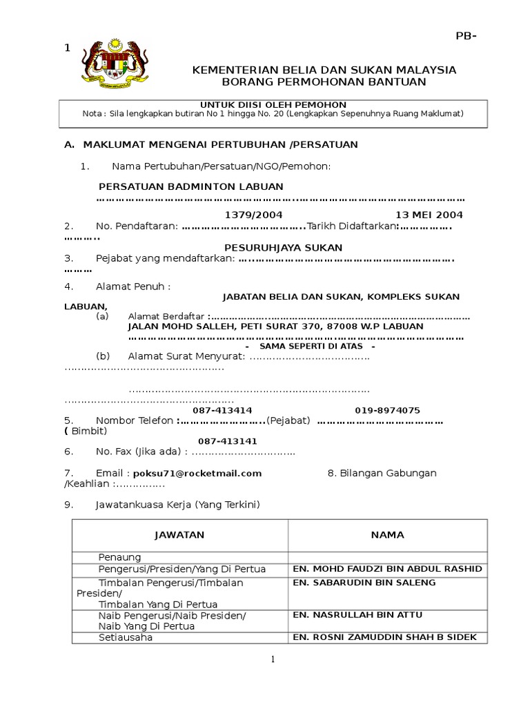 Pb 1 Borang Permohonan Bantuan