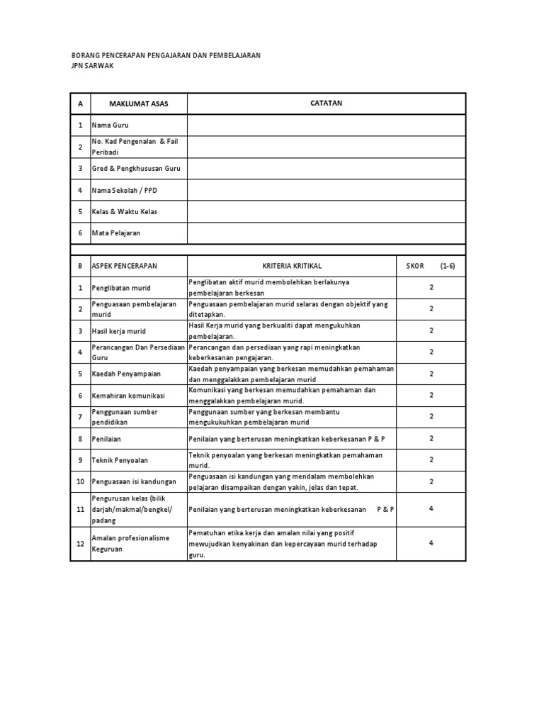 Doc Jadual Pencerapan Pdpc Marwan Mawar Academia Edu