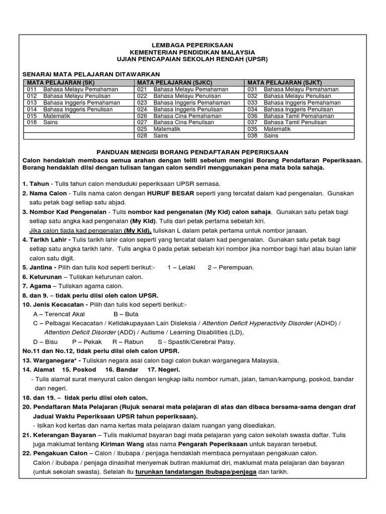 Panduan Mengisi Borang Pendaftaran Upsr 2016