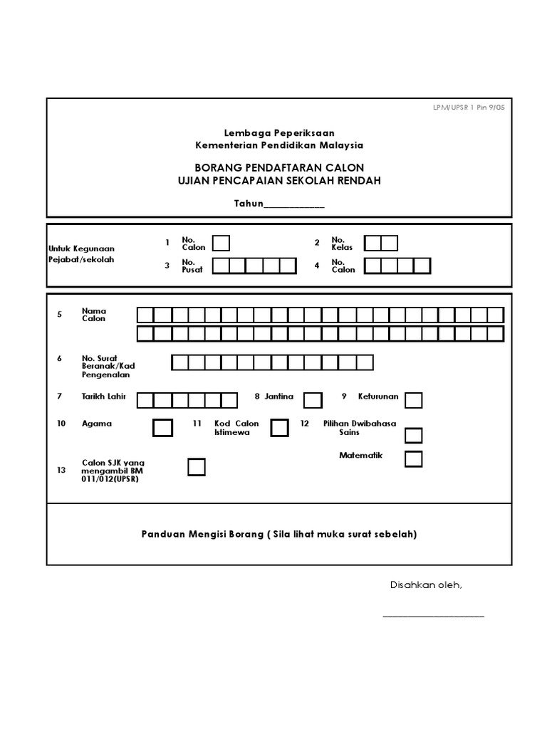 Borang pendaftaran calon upsr 2. Cara pendaftaran orang kurang upaya 2020 online 1. Sekolah angka giliran 13. Rm tandatangan calon ibubapa penjaga calon upsr no.