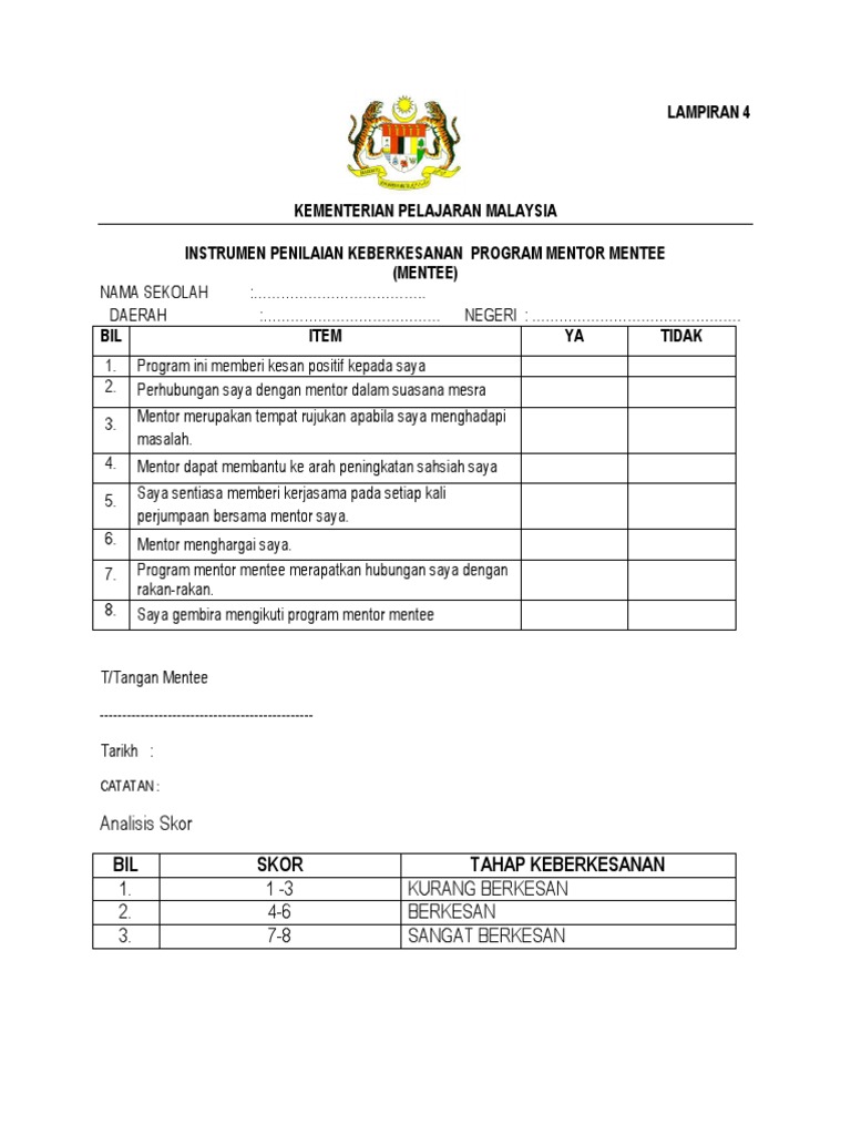 Borang Penilaian Keberkesanan Program Latihan Pdf Document