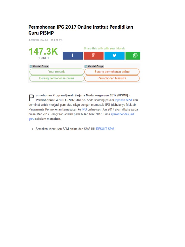 Permohonan Ipg 2017 Calon Guru Pismp Lulusan Spm Omaq Org