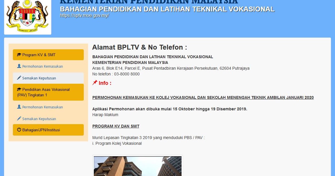 Permohonan Online Kemasukan Murid Ke Program Kolej Vokasional Dan Sekolah Menengah Teknik Ambilan Jan 2019 Kolej Vokasional Setapak