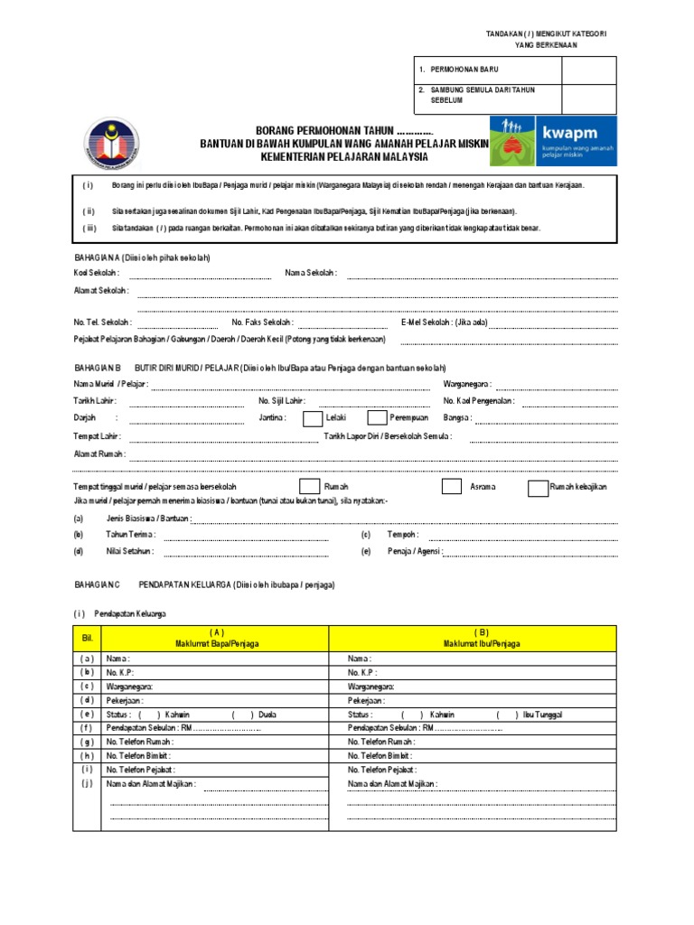 Borang Permohonan Kwapm 2020 Kumpulan Wang Amanah Pelajar Miskin