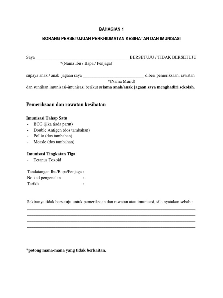 Download Borang Persetujuan Perkhidmatan Kesihatan Dan Imunisasi