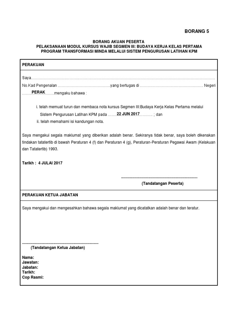 4 Borang 5 Borang Akuan Peserta Words