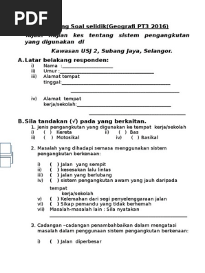 Borang Soal Selidik Sistem Pengangkutan Awam Geografi Tmn Klang Jaya