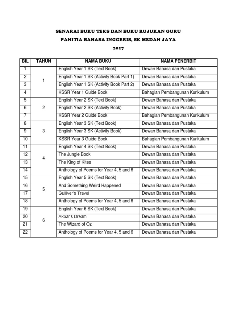 Senarai Buku Teks Dan Buku Rujukan Guru