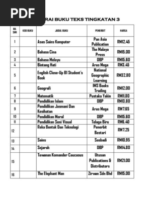 Senarai Judul Buku Tingkatan 3