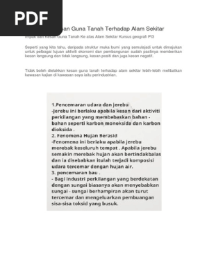 Kesan Guna Tanah Terhadap Alam Sekitar Geografi Pt3 Pendidikan Malaysia