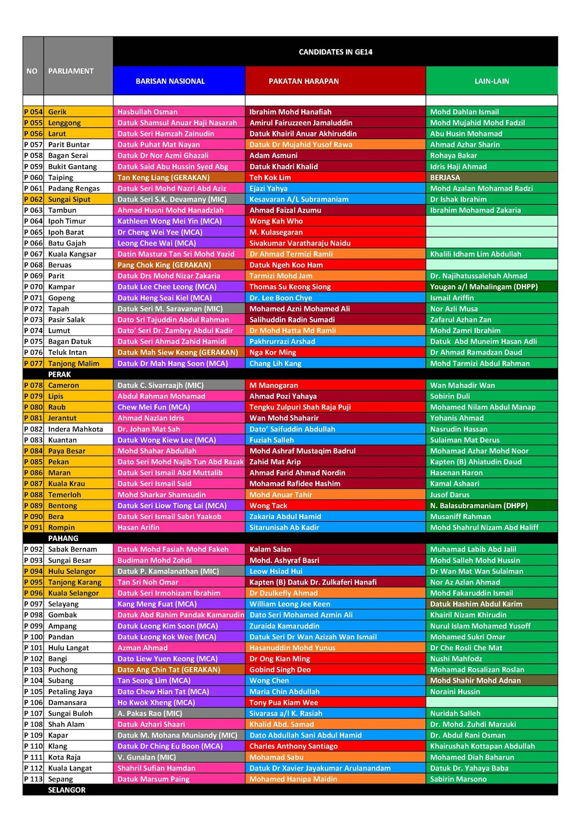 Pru14 Senarai Calon Calon Parlimen Ini Berita Malay