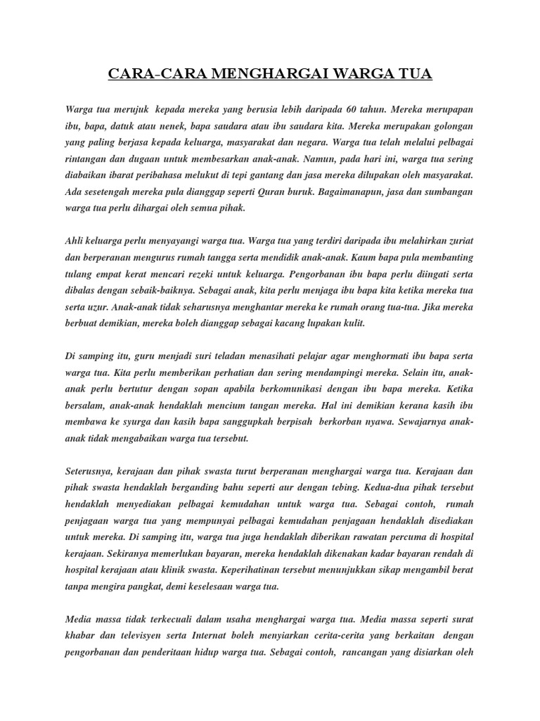 Bahasa Melayu Spm Cara Cara Menghargai Jasa Warga Tua Karangan Galus